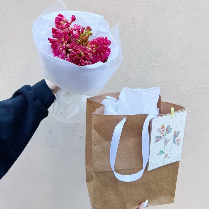Упаковка – 3 шт.Авторская открытка – 1 шт.гиацинты – 5 шт.крафтовый пакет 1 – 1 шт.