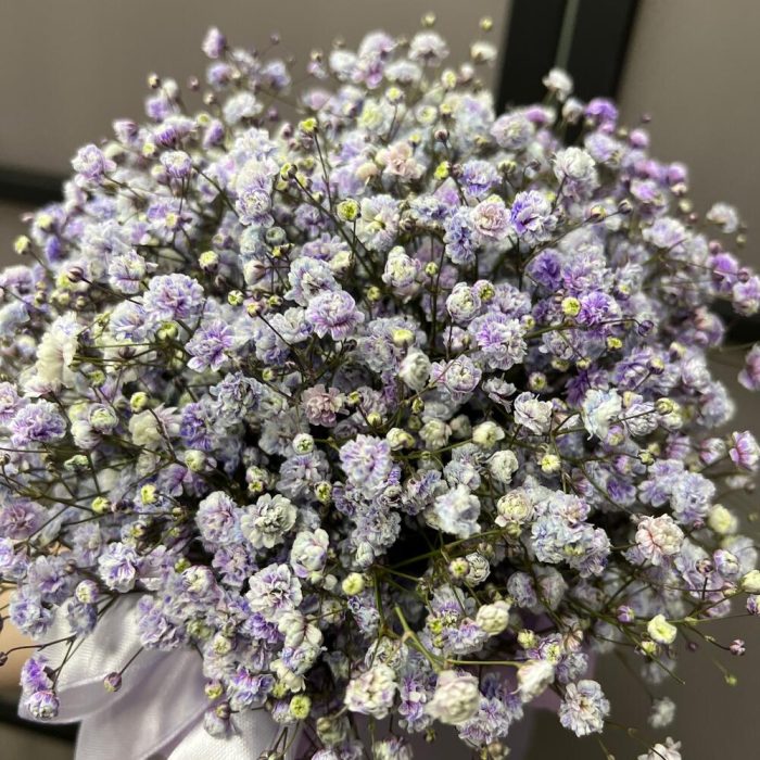 “Сиреневый туман” – композиция из гипсофилы в шляпной коробке