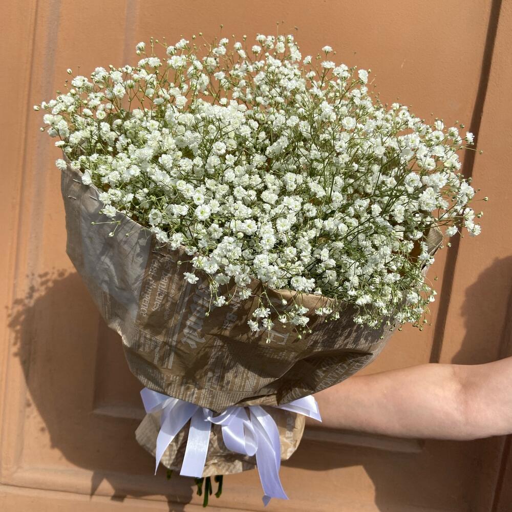 Прекрасный пышный букет из гипсофилы будет радовать Вашу избранницу очень долгое время, ведь гипсофила – это сухоцвет.