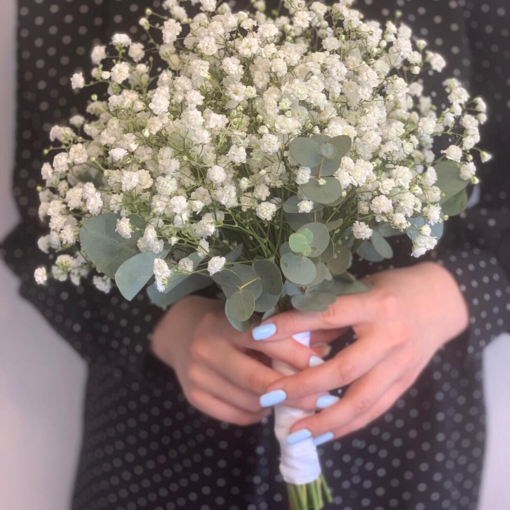 Гипсофила – 9 шт.Эвкалипт – 3 шт.Атласная лента – 1 шт.