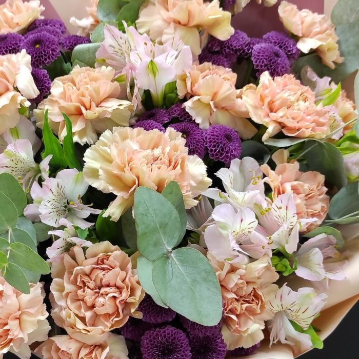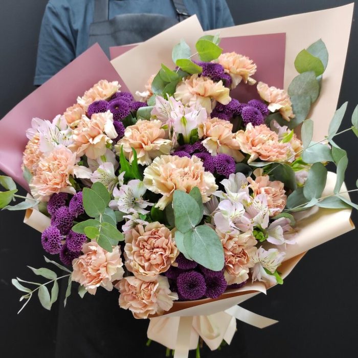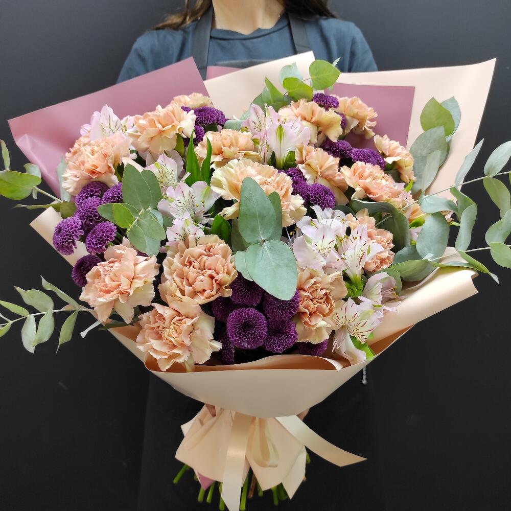 15 лавандовых гвоздик с эвкалиптом (букет N 24)