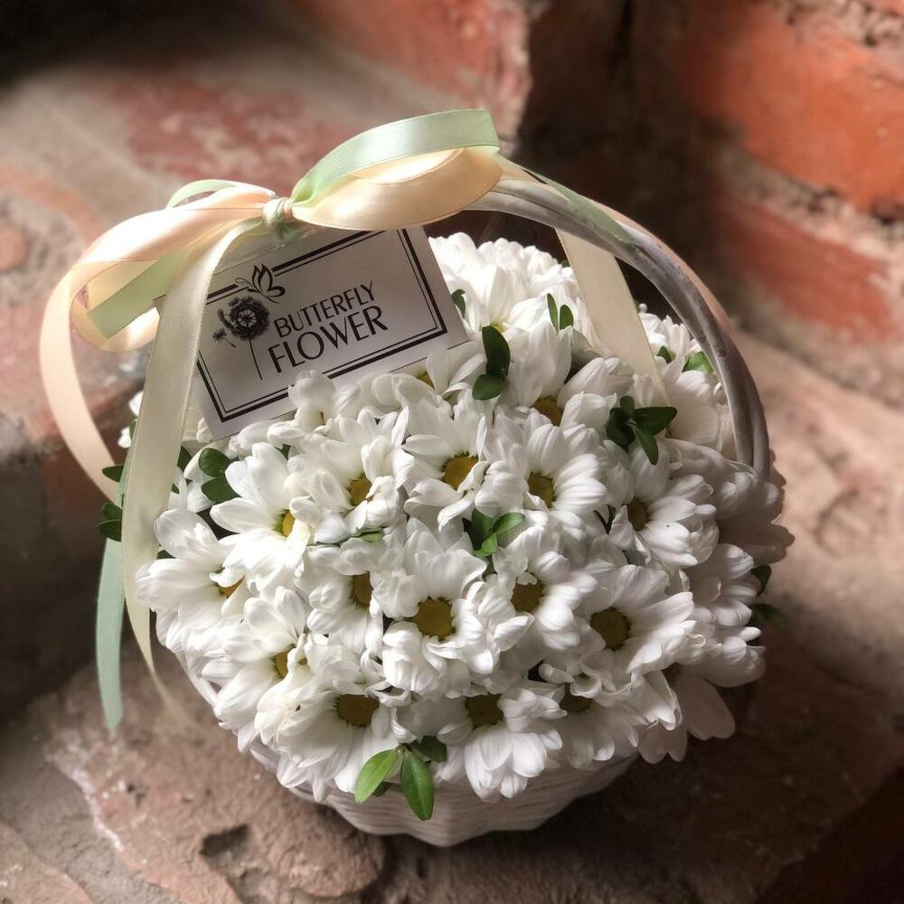 Корзина – 1 шт.Оазис – 1 шт.Фисташка – 1 шт.Хризантема кустовая – 5 шт.