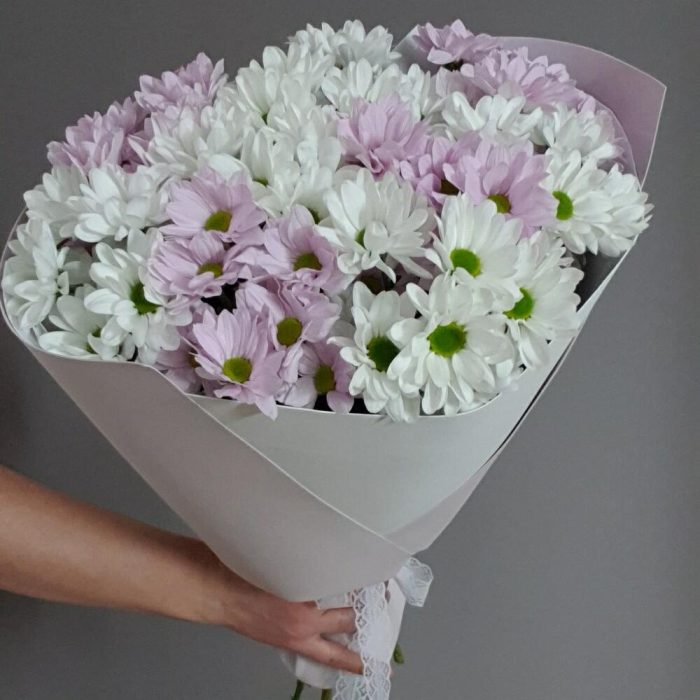 Упаковка – 2 шт.Хризантема Ромашковая – 9 шт.Лента Кружево – 1 шт.