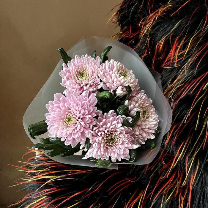 Авторская упаковка – 1 шт.сиреневые одноголовые хризантемы – 5 шт.