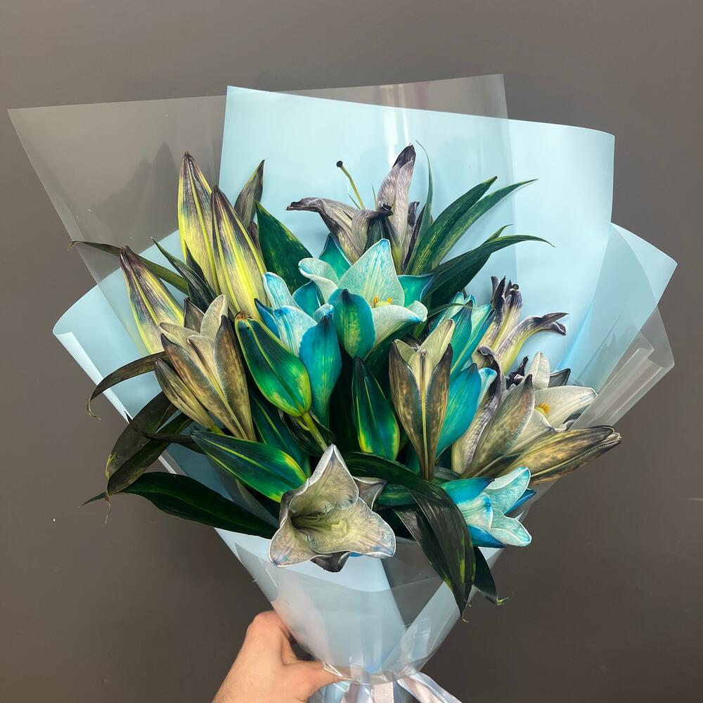 GRAFFITI BLUE 9 цветных лилий в Упаковка