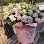 Шляпная коробка с розами и лизиантусом