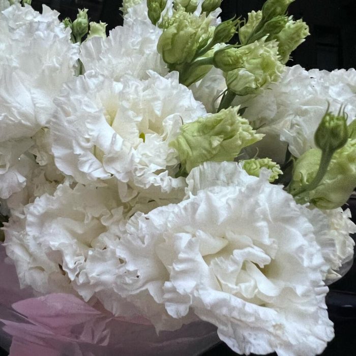 Нежный букет эустомы, в легкой почти прозрачной упаковке, чтоб все внимание получателя было только на цветок.Сортов эустомы или ещё одно название этого цветка лизиантус очень много, как и цветовой гаммы.Но именно этот самый нежный, каждый цветок хочется разглядывать и … Показать ещётрогать. Аромат у букета слегла заметный, напоминает аромат свежести. Достаточно стойкий и живучий цветок.