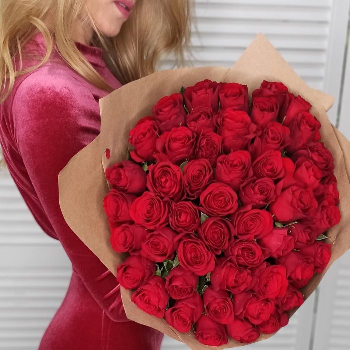 Роза – 51 шт.Дизайнерская упаковка – 3 шт.