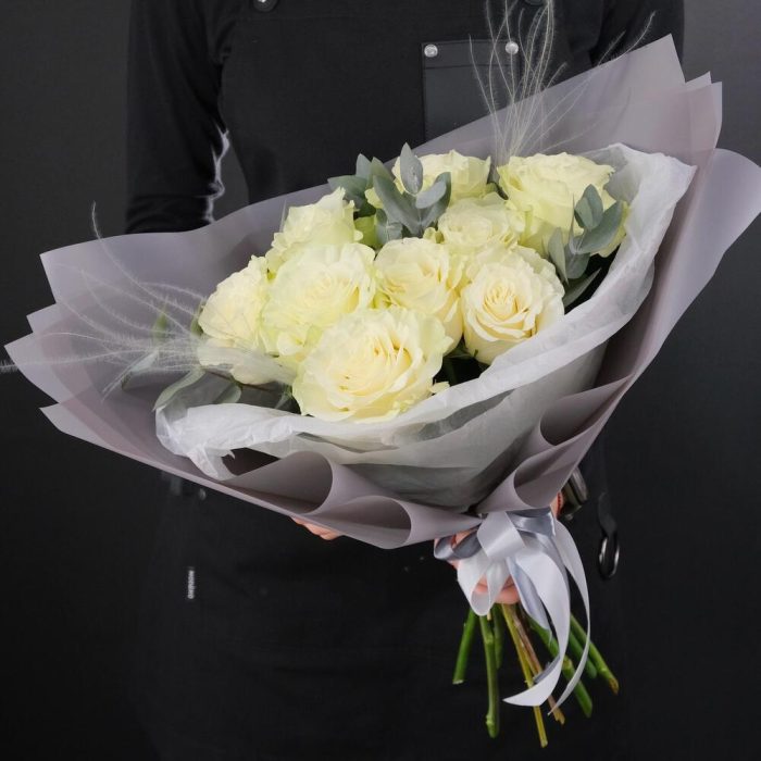 Эвкалипт – 1 шт.Упаковка – 1 шт.роза сорта мондиаль – 9 шт.