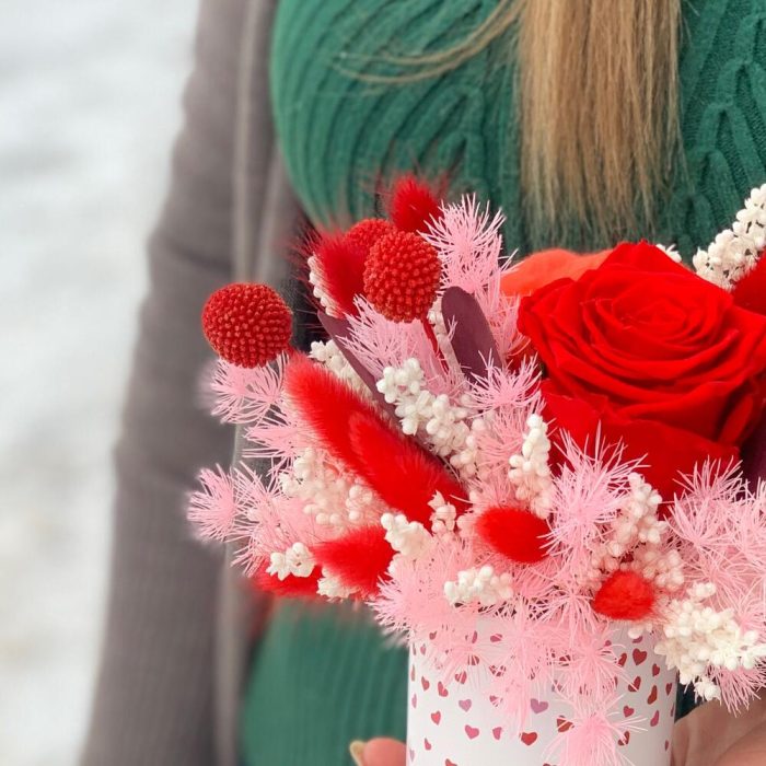 Сухоцветы – 45 шт.Роза стабилизированная – 1 шт.