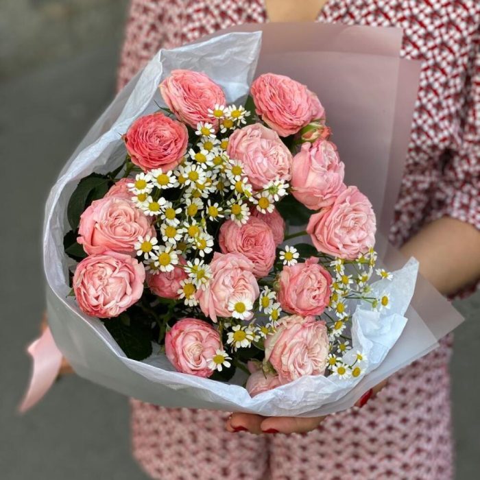 Ажурная кустовая роза с ромашкой