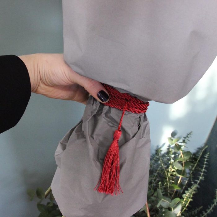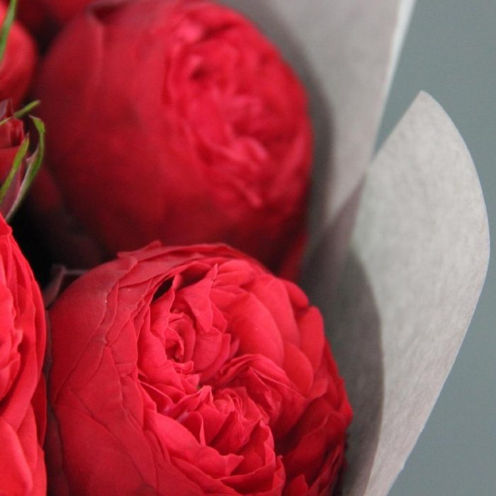 Роза пионовидная – 15 шт.Эвкалипт – 7 шт.Упаковка дизайнерская – 3 шт.Лента атласная – 2 шт.Открытка – 1 шт.