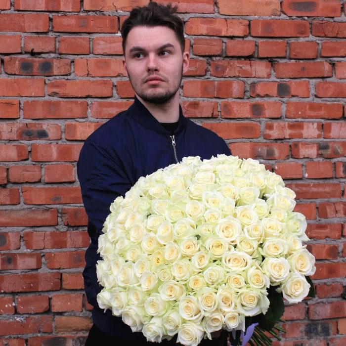 Букет из 101 белой розы "Снежный ангел"