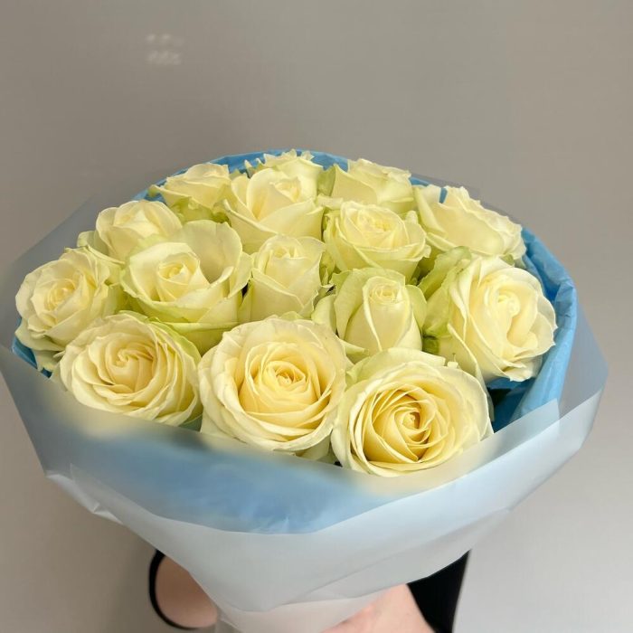 Букет из 15 белых роз в упаковке