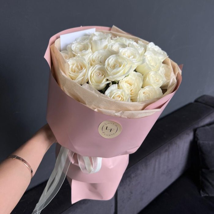 Букет из 23 белых высоких роз