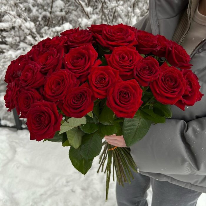 Букет из 51 красной розы 35-40 см (Кения) под ленту