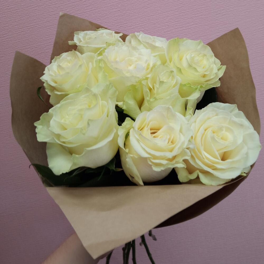 Букет из 9 белых Эквадорских роз 70см