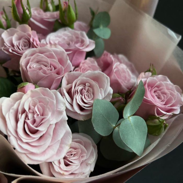 Букет из кустовой ароматной розы и эвкалипта