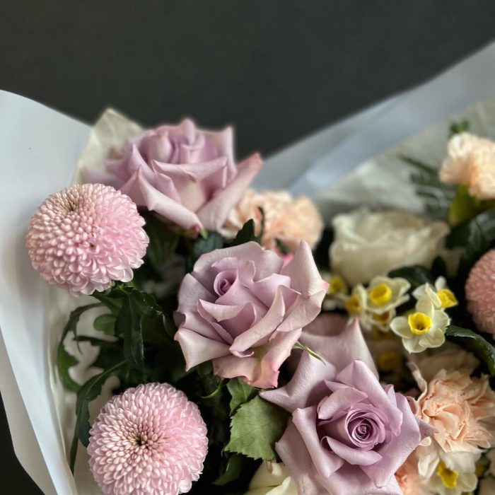 Категории: Гвоздики, Пионовидные розы, Розы, Хризантемы