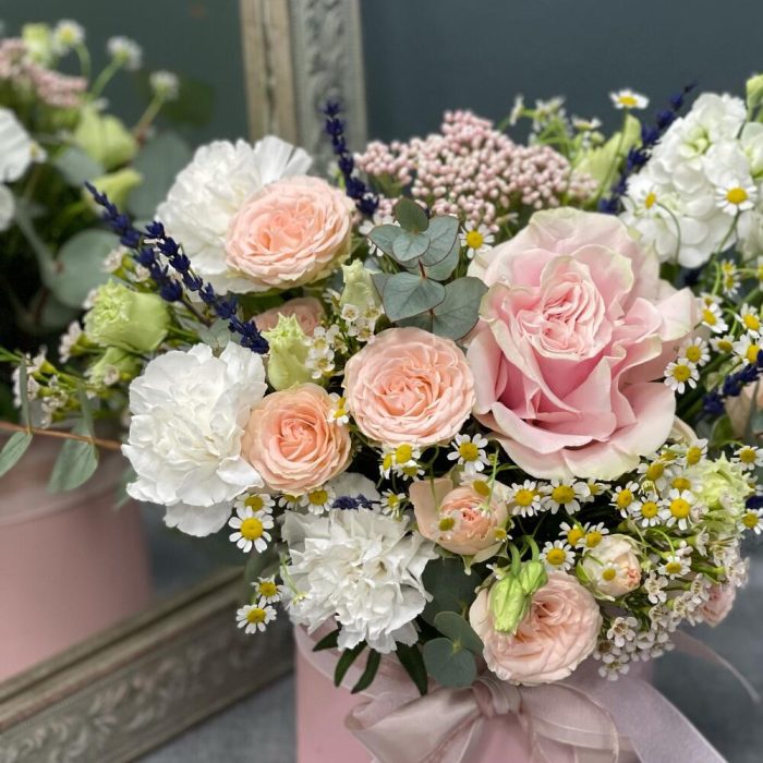 “В твоих глазах”: нежная шляпная коробка с французскими розами