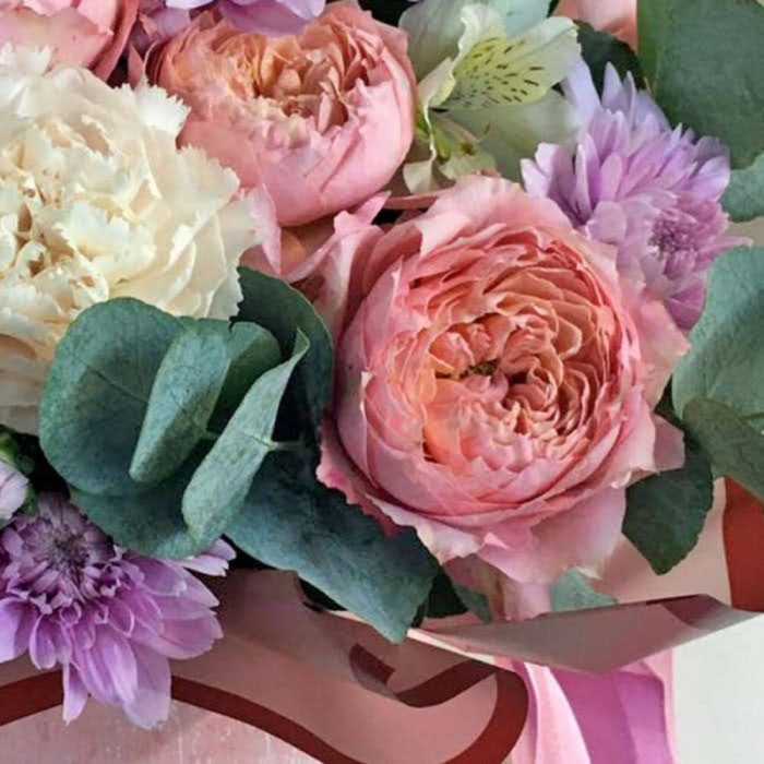 Гвоздики, Кустовые розы, Пионовидные розы, Розы