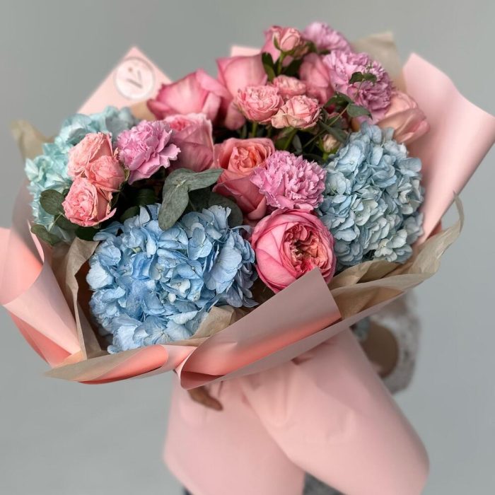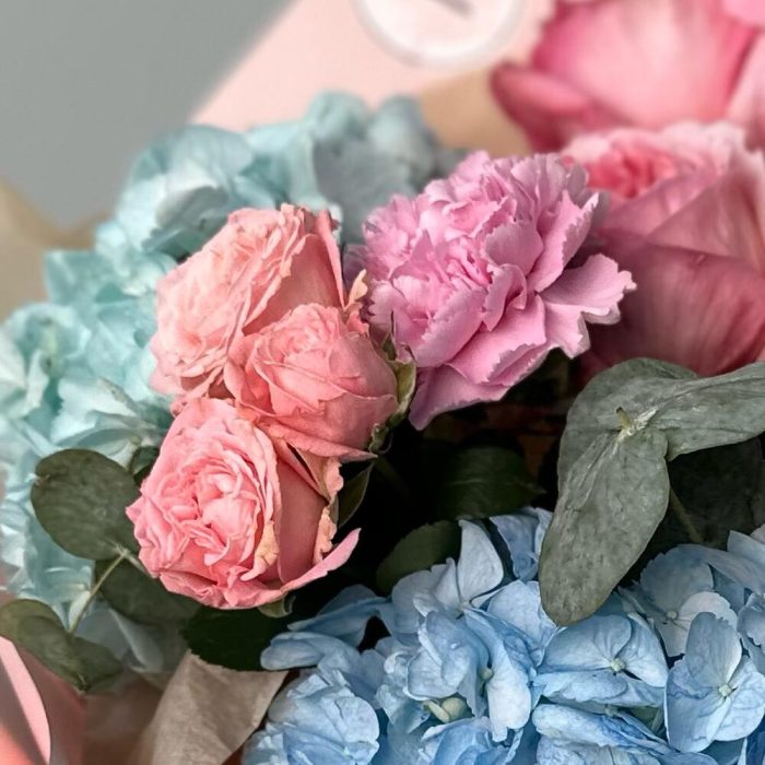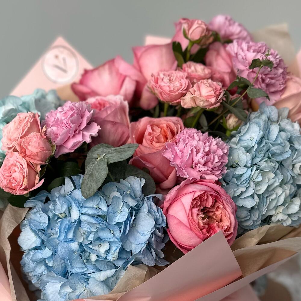 Гвоздики, Кустовые розы, Лизиантусы, Пионовидные розы, Розы