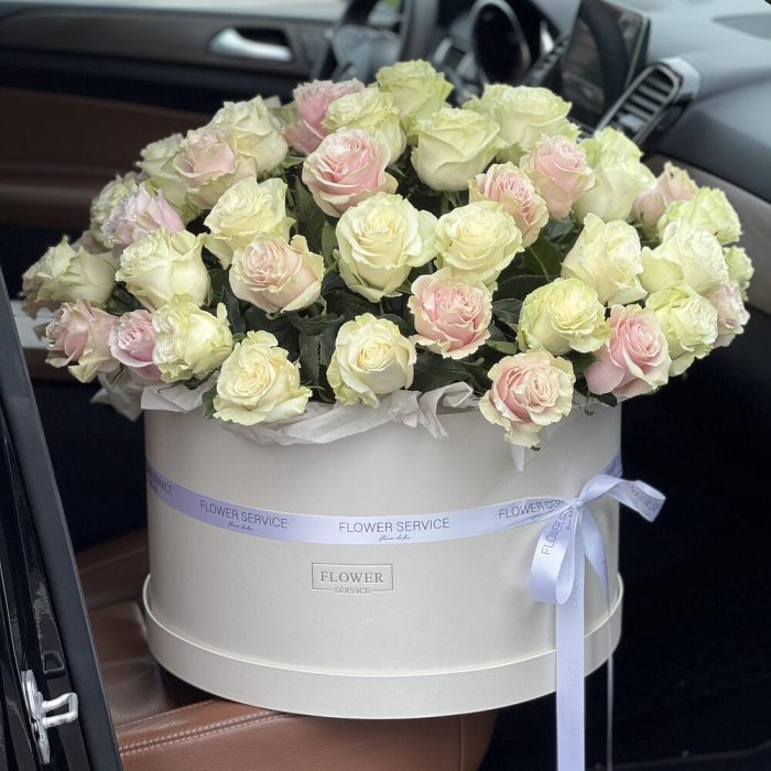 Шикарная коробка белых и розовых роз!