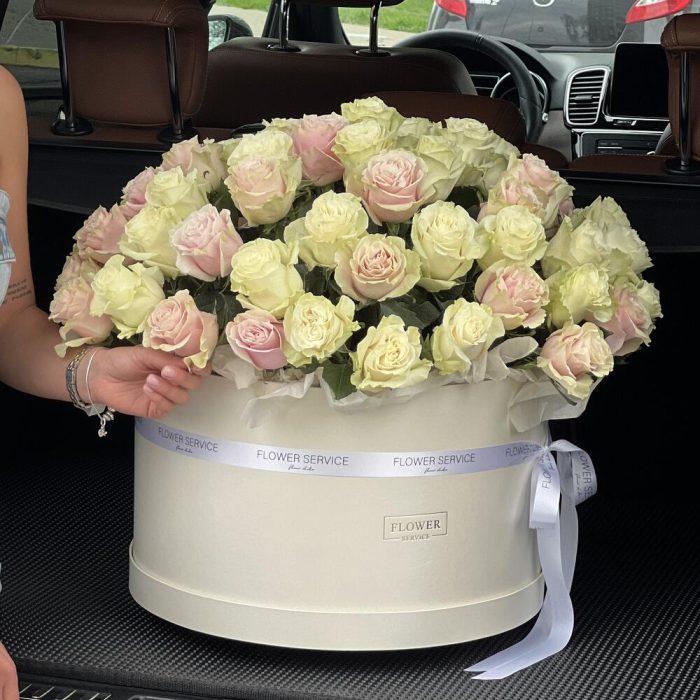 Коробка Нежные чувства из 75 белых и розовых роз