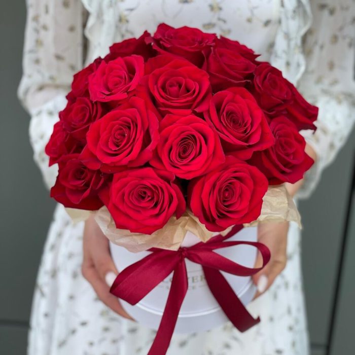 Метки: 25 роз, Красные розы, от 4000 до 5000 руб, Роза 30 см, Розы в коробке, цветы в коробке