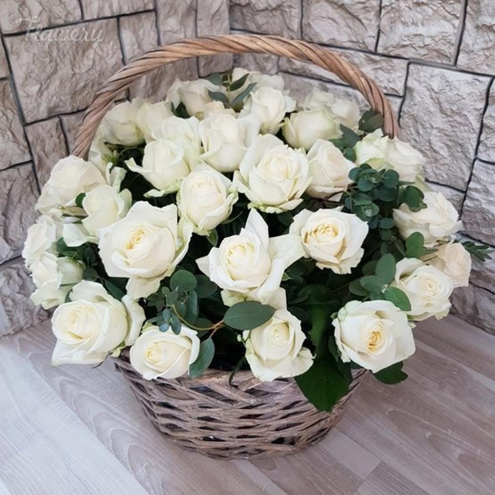 Метки: 51 роза, от 5000 руб, цветы в корзине