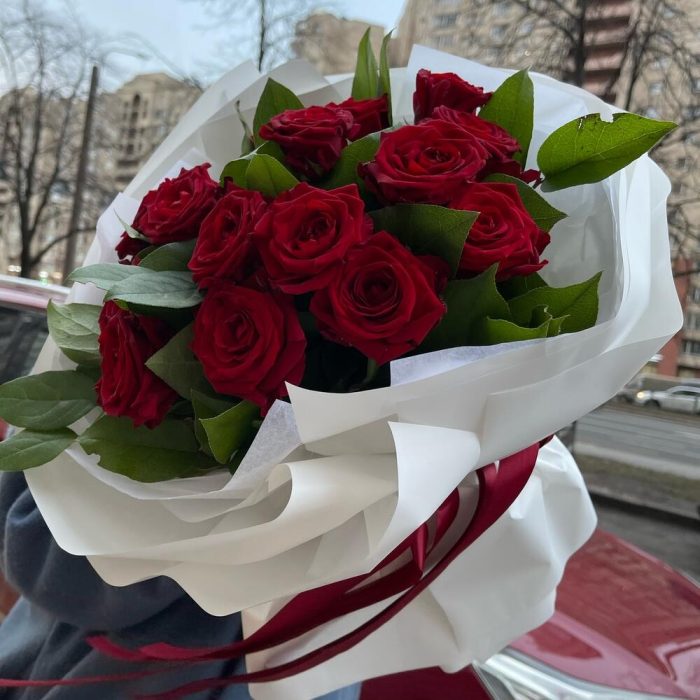 Пленка матовая – 6 шт.Салал пучок – 1 шт.Красная роза россия – 15 шт.