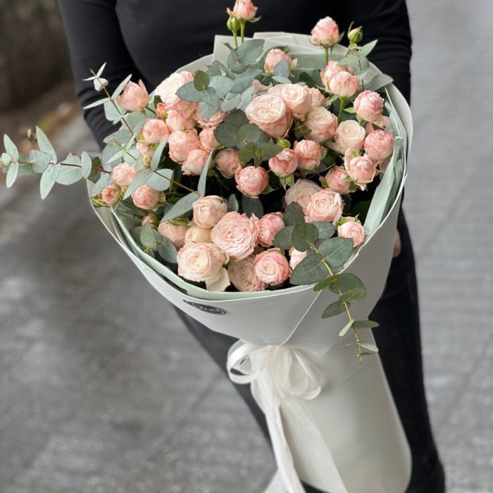 Ароматная радужная гипсофила в кашпо. Букет 119 ALMOND ROSES