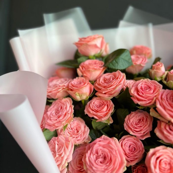 Кустовая пионовидная роза – 13 шт.декоративная упаковка – 1 шт.Атласная лента – 1 шт.