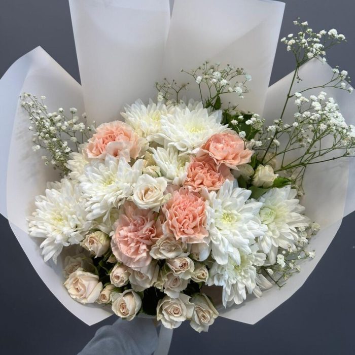 Категорий: Гвоздики, Гипсофила, Диантус, Кустовые розы, Розы, Хризантемы, Хризантемы кустовые