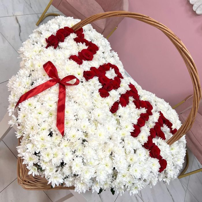 Кустовая хризантема – 90 шт.Роза Эквадор – 47 шт.Корзина плетеная – 1 шт.