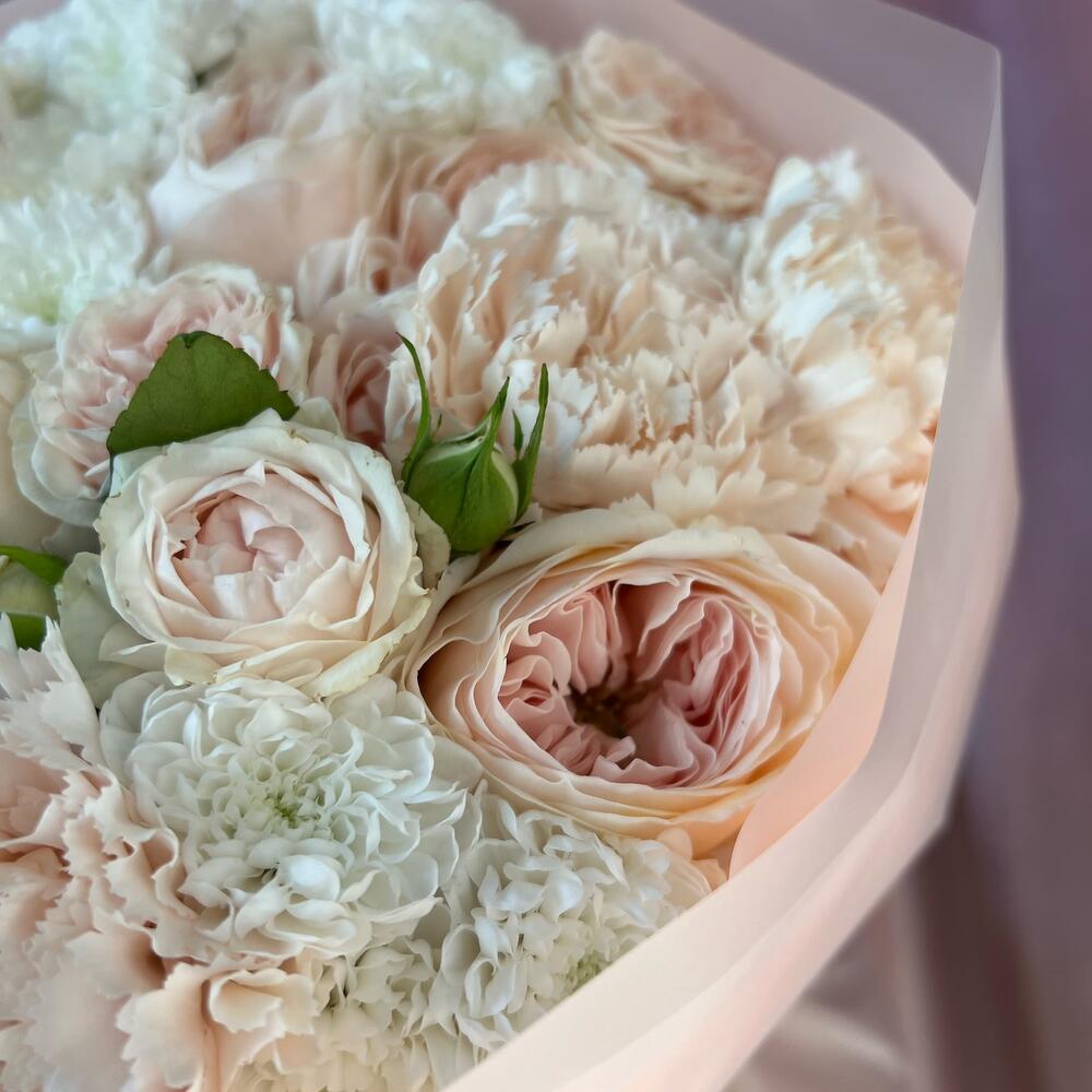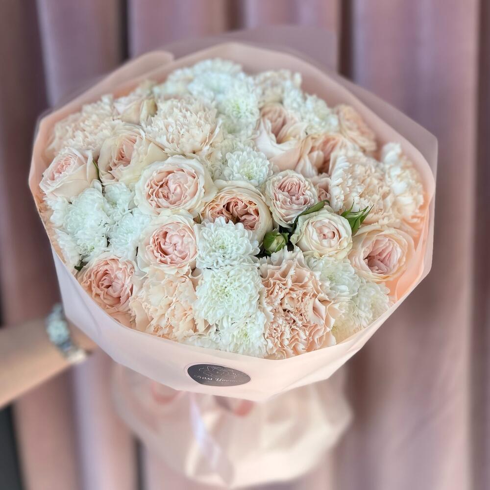 Альстромерии, Гвоздики, Кустовые розы, Лизиантусы, Розы, Хризантемы