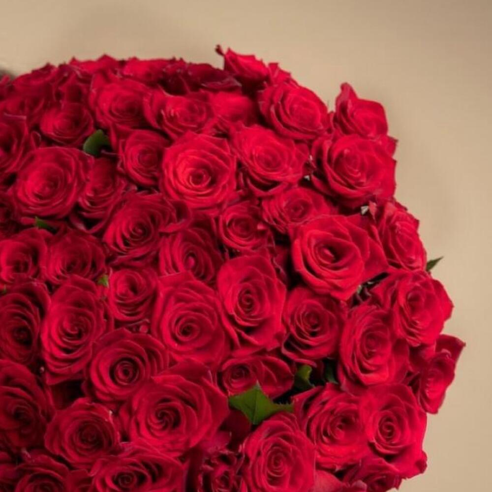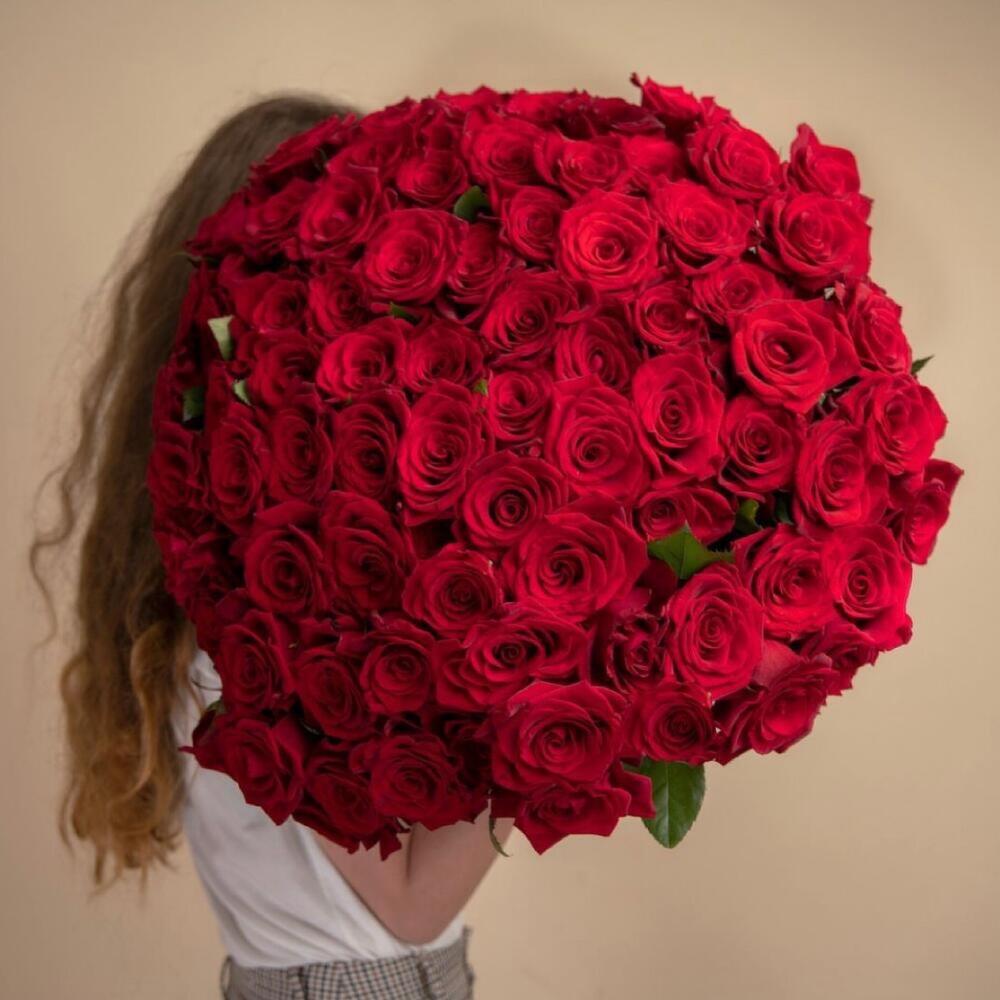 Роскошный букет из 101 красной розы. Букет 158 ALMOND ROSES