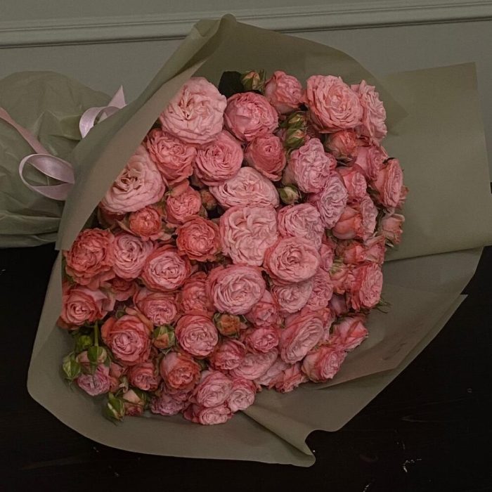 Пионовидная кустовая роза – 25 шт. Дизайнерская упаковка – 3 шт. Открыточка с вашими пожеланиями – 1 шт. доставка – 1 шт.