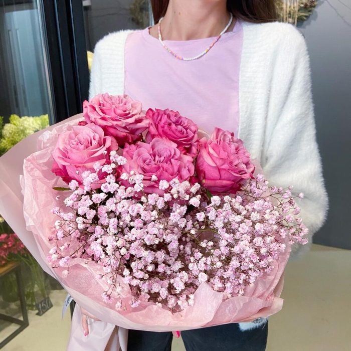 Гипсофила розовая – 3 шт.роза кантри блю – 5 шт.