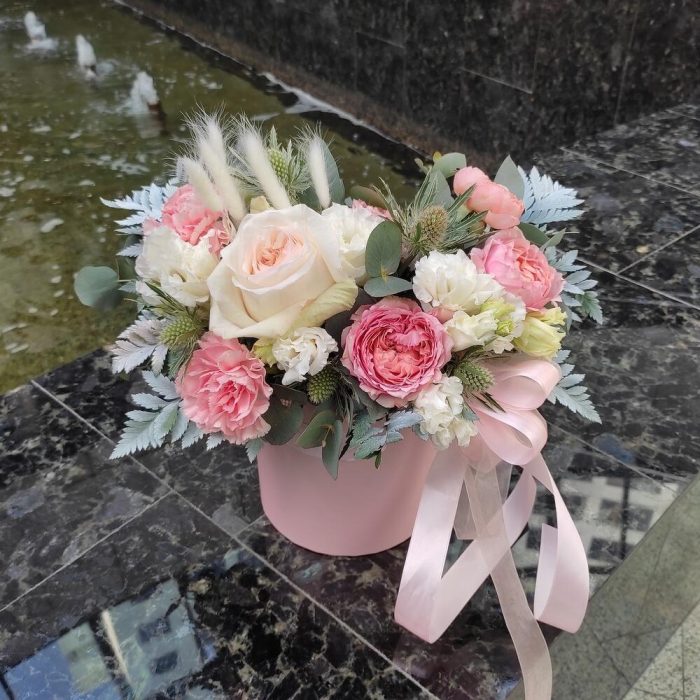“В твоих глазах”: нежная шляпная коробка с французскими розами