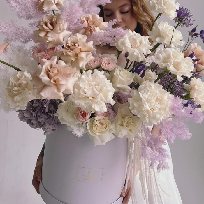 Шляпная коробкаБольшая пышная коробка с цветамиГортензииФранцузская Роза