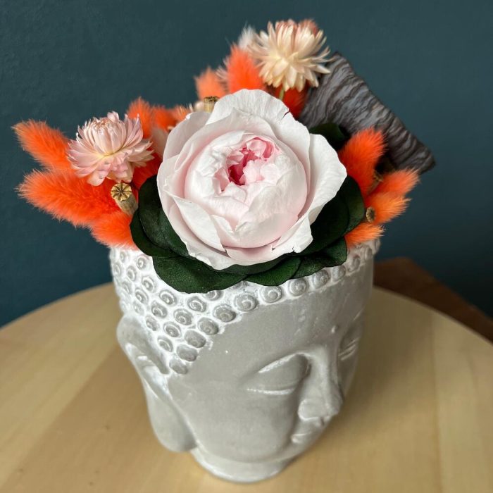 Сухоцветы в кашпо Будда