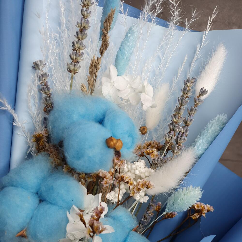 Букет из сухоцветов с хлопком, эвкалиптом, лагурусом