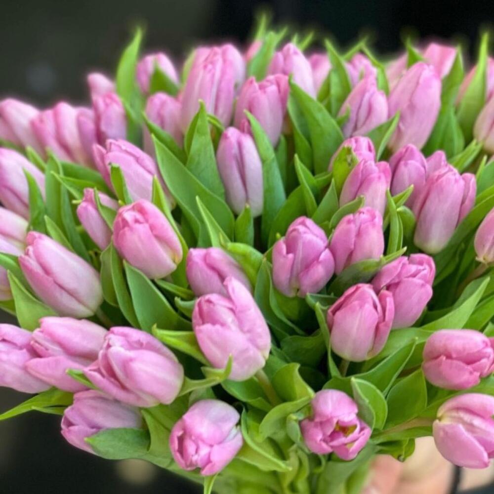 Тюльпан розовый – 51 шт.Лента атласная – 2 шт.Открытка – 1 шт.инструкция по уходу за цветами – 1 шт.хорошее настроение – 100 шт.коробка переноска – 1 шт.Кризал – 1 шт.
