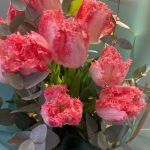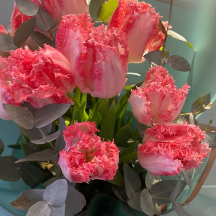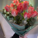 Гвоздики, Лизиантусы, Розы, Тюльпаны